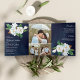 Rustic White Magnolia Floral Navy Blue Wedding Tri-Fold Invitation