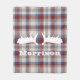 Rustic White Moose Antlers Berry Plaid Monogram Fleece Blanket