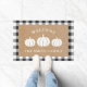 Rustic White Pumpkins Family Name Welcome Doormat
