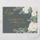 Rustic White Roses Greenery Modern Botanical RSVP Foil Invitation Postcard