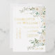 This Wedding Invitation features a beautiful watercolor floral design with white roses, flowers, and delicate greenery, with modern calligraphy typography in REAL GOLD FOIL. Check out our Wedding collections to find the perfect matching items to make your special day even more special, and impress your guests with this beautiful design.