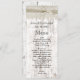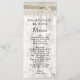 Long and skinny wedding table menu done in a rustic chic look, with graphics of a distressed white washed wood panel background. Graphics of Ivory crocheted looking lace, at the top, has an ivory double strand ribbon tied in a knot. Personalise the black text for your special day. Lovely addition to your wedding reception tables. Matching products available.