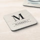 This simply elegant custom monogrammed beverage coaster set features classic black monogram text that can be personalised with a last name initial and last name. A beautiful keepsake gift for a newlywed couple, family, or new homeowners. A white washed faux wood grain background adds a rustic textured look to the design.