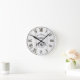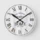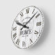 Rustic White Woodgrain Family Name Round Clock. This farmhouse-style wall clock features a distressed white woodgrain print, Roman numerals, and a bold serif family name design. A timeless piece perfect for cozy kitchens, entryways, or living rooms that embrace rustic charm and vintage accents.