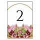 This design features a rustic wild flower bouquet. A simple gold circle frame encircles the text. The rustic pink floral colour tones compliment the greenery of the leaves. The gold tones tie everything together to create a rustic country woodland garden feel. Elegant wedding table number design with modern elements. Matching wedding invitations and other stationery items are also available. Customise the number and purchase each tables number individually according to how many table numbers you need.