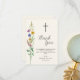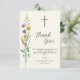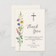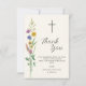 This rustic floral Baptism thank you card features wildflowers and a cross on a soft cream background.