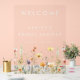 This design combines elegance and whimsy, pairing minimal modern text with a row of delicate watercolor wildflowers perfect for boho-inspired weddings.