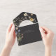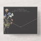 AVAILABLE WITH OR WITHOUT A QR CODE TO SCAN. This design features a soft wildflower frame around a cream oval on a soft black background. Add a QR code URL to your invitation so that gusts can quickly access your wedding Website for details, directions, menu options, and more, or add your gift registry Web URL. Personalised All-In-One invitations are a unique combination of both a beautifully printed custom invitation with an easy to tear off perforated RSVP postcard. And they are so easy to use! You simply fold, then seal the back flap with the three included clear stickers, and mail. And when your guests receive your custom invite, they just tear the perforated RSVP Card off and drop it back in the mail to you!