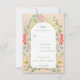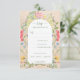 Delicate wildflowers in light and bright watercolors are arranged around the central arch of the invitation. Calligraphy and modern sans serif font combines for a modern simple look, in harmony with the sweet wildflowers. Green inked fonts further accentuate the wild and natural feel. Placed on antique paper background.