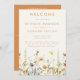 This design combines elegance and whimsy, pairing minimal modern text with a row of delicate watercolor wildflowers perfect for boho-inspired weddings.
