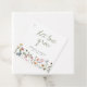 Pretty favour tags for your seeds packet favours, featuring the editable headline "let love grow" in sage green handwritten style font, and a border of watercolor wildflowers in pink, blue, lilac, yellow and white. The reverse features the same border of flowers and an editable message.
