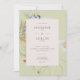 Announce your wedding with a touch of rustic elegance. Our captivating wedding invitation features a vibrant arrangement of wildflowers and ferns, meticulously hand-drawn and reminiscent of pressed botanical treasures. Rich colours like tan, yellow, cream, blue, and sage green stand out beautifully against a soft light sage green background frame. Your wedding details are showcased in a crisp cream text box, ensuring clarity and elegance. This captivating design captures the essence of a wildflower meadow, offering a unique and memorable way to celebrate your love story. Created by Simply Farmhouse Press.