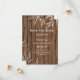 This Save the Date wedding announcement features a pretty willow overlay on a rustic wooden background in shades of brown, white and black.