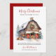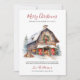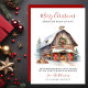 This watercolor rustic winter barn Christmas card with a festively decorated barn sprinkled with snow and pine trees would be perfect to send from your farm to friends and family. The message is customisable and the templates are super easy to use. In seconds you can see your unique Christmas cards.