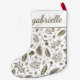 Rustic Sepia and White Winter Botanical Pattern with Name Holiday Christmas Stocking.