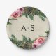 Rustic Winter Burlap Pine Rose Wedding Monogram Paper Plate