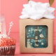A rustic winter cabin window featuring a starry night sky dotted with stars and snowflakes, an evergreen tree and a chickadee bird. Personalise if you wish.
