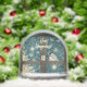A rustic winter cabin window featuring a starry night sky dotted with stars and snowflakes, an evergreen tree and a chickadee bird. Personalise if you wish.on front and back.