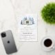 Celebrate your love story with this rustic and romantic wedding invitation, featuring a watercolor barn and an enchanting evergreen forest. Perfect for anyone planning a winter wedding.