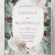 AVAILABLE WITH OR WITHOUT A QR CODE TO SCAN OR WITH DINNER OPTIONS. Introducing our enchanting winter wedding invitation, a perfect blend of elegance and natural beauty. Framed by lush winter pine greenery, delicate pine cones, white roses, and eucalyptus, this invitation captures the charm of the season in all its splendour. Against a soft white blur overlay with a serene green background, sparkling white lights create an atmosphere of magic and warmth. At the front flap, the bride and groom's first initials take centre stage, adding a personal touch to the invitation. This design is a celebration of nature's grace, where the pine greenery and white roses symbolise everlasting love, and the eucalyptus reflects the harmony of your union. Prepare to captivate your guests with an invitation that exudes the beauty of winter's embrace. The gentle blend of greenery and sparkling lights creates an ambiance of enchantment and joy, making your wedding a truly unforgettable experience. Set the stage for a celebration that is as unique as your love story, and create cherished memories that will be cherished like the warmth of the season with this truly captivating invitation. Created by Simply Farmhouse Press.