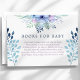 Rustic Winter Floral Navy Books For Baby Enclosure Card. Beautiful elegant botanical bring a book card with navy blue watercolor flowers, and purple florals. This custom fall winter modern baby shower design can easily be personalised with your custom shower details.