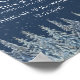 An elegant guest book sign for your rustic winter wedding with a snow covered country forest at night in navy blue and white.