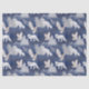 A rich dark blue background with a beautiful mountains scene in a pattern with snowy pine trees, white foxes, and flying snowy owls. This Christmas tissue paper is perfect for your holiday crafting and christmas presents this season.