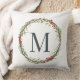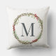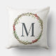Rustic Winter Greenery Berries Monogram Wreath Cushion