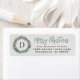 A lush watercolor winter greenery wreath frames a graceful monogram initial on this rustic Christmas return address label. Hand-lettered "merry christmas" script and a soft linen-textured background bring warmth and charm. Personalise with your monogram, family name, and address for holiday card mailings. A timeless finish for every Christmas envelope.