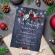 Wedding invitation template featuring a floral bouquet of red burgundy and white peony roses with seasonal pine green fir branches, red berries and foliage with strings of twinkle lights on a blue grey barnwood background and with a fancy modern contemporary changeable script text. -------- Personalise it with your text and your monogram / names initials on the back! ----- The invitation is ideal for winter rustic country floral / Christmas weddings.