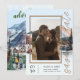 Rustic Winter Lodge in the Mountains Adventure Begins-Save the Date is a beautiful watercolor winter scene with a snowboarding couple enjoying a campfire surrounded with cosy log lodges and cabins, ski mountains with ski lifts. Personalise this card with your own photo to create special memories. Perfect announcement card for your wedding in the mountains, special family or holiday event in the mountains. Change the text to match your event.