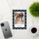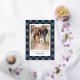 Send holiday greetings to friends and family with our rustic elegant photo cards featuring a wintry navy blue and black buffalo plaid pattern framing your vertical favourite photo. Personalise with two lines of custom text; shown with "Merriest Christmas" and your family name. Gold foil trim adds a luxe touch to this festive design.