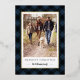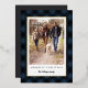 Send holiday greetings to friends and family with our rustic elegant photo cards featuring a wintry navy blue and black buffalo plaid pattern framing your vertical favourite photo. Personalise with two lines of custom text; shown with "Merriest Christmas" and your family name. Gold foil trim adds a luxe touch to this festive design.
