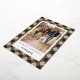 Send holiday greetings to friends and family with our rustic elegant photo cards featuring a wintry navy blue and black buffalo plaid pattern framing your vertical favourite photo. Personalise with two lines of custom text; shown with "Merriest Christmas" and your family name. Gold foil trim adds a luxe touch to this festive design.