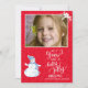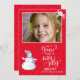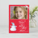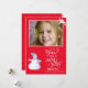 Rustic modern Let it Snow Have a Holly Jolly Christmas white calligraphy handwritten script lettering winter family photo card on hot light red background, falling snow overlay and watercolor snowman. Personalise it with your photo (horizontal orientated) and your text on front and back! -------- Please note that the red background colour on front and back is editable. You can change it after selecting CUSTOMIZE option.