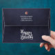 Rustic winter chalkboard like envelope with a mountains scene with pine trees and falling snow on the front side, "Happy Holiday" typography script, a small globe decoration and your custom address on the back side. +++++++++++++ Suitable for Christmas / winter holidays greeting cards / winter weddings or business corporate greeting mailings.