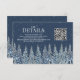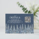 QR code wedding detail card inserts for your rustic winter wedding with a snow covered night forest in navy blue and white. Use these cards to direct your guest to your wedding website for more details about your accommodations, directions or to RSVP online.