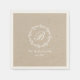 Custom-designed Christmas and holiday party paper napkins featuring rustic white winter wreath design with personalised family name initial.