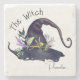 A personalised rustic vintage witch hat white stone coaster. A fun witchy gift idea for the modern, Hedge Witch, Green Witch, Kitchen Witch or traditional witch. The witches hat is symbolic of pure spiritual power.