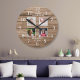 Rustic Wood 4 Photo Collage Family Name Quote Round Clock