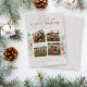 Elevate your holiday greetings with our Foil "Merriest Christmas" card. The birch wood background sets the stage for a 4-photo collage encased in a luxurious white and gold foil frame. Complemented by tasteful watercolor poinsettia and holly berry accents.