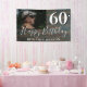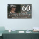 Rustic Wood 60th Birthday Party Photo Banner. Great sign for the 60th birthday party with a custom photo and text in trendy white script with a name. The background is dark wood texture. Personalise the sign with your photo, your name and the age number.