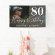 Rustic Wood 80th Birthday Party Photo Banner. Great sign for the 80th birthday party with a custom photo and text in trendy white script with a name. The background is dark wood texture. Personalise the sign with your photo, your name and the age number.