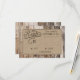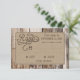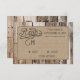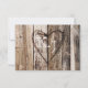 Aged wood planks with heart etching and linen-look texture with stitches rustic country western wedding RSVP card design.