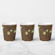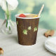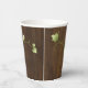 Rustic themed wedding paper cups, with a dark wood looking background and graphics of green ivy. Customise to add your own text.