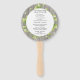 Rustic wood looking wedding program fan, with graphics of green ivy surrounding a white text circle. Personalise the text, on both sides of the fan, for your wedding day.