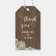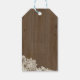 Rustic modern outdoors wedding gift tags with elegant lace elements at the top and bottom on a printed faux wood texture background. An elegant and stylish rustic design, perfect for outdoor or vintage themed weddings! This design is a part of a wedding suite "Rustic Wood and Lace". Matching items are available. Click the CUSTOMIZE IT button to customize fonts, move text around and create your own unique one-of-a-kind invitation design.