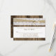 Rustic chic wedding response RSVP card, with graphics of a rustic weathered wood background, with a white band running across the middle. Graphics of elegant white lace, at the top, has a champagne wheaten colour double strand ribbon tied in a knot. Personalise the tan coloured text for your special day. Matching products available.