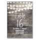 Rustic wood and string lights table number. vintage grey wood background decorated with string of lights. Perfect wedding invite for wedding with night lights wedding theme, barn theme, garden theme, outdoor wedding with twinkle lights.