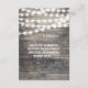 Rustic wood and string lights wedding insert guest info. Add all necessary information for your guests on this vintage grey wood background decorated with string of lights. Perfect wedding invite for wedding with night lights wedding theme, barn theme, garden theme, outdoor wedding with twinkle lights.